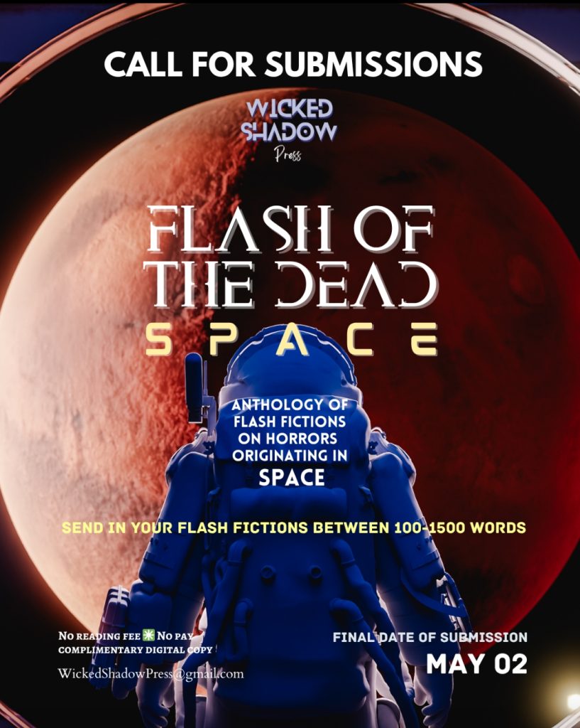 Wicked Shadow Press invites flash fiction horror writers to journey beyond the safety of Earth’s thin atmosphere for Flash of the Dead: Space (Expected release: May/June 2026). the new anthology of terrifyingly short tales where the horror comes not from within the confines of this earth, but from the cold, infinite expanse of space itself.